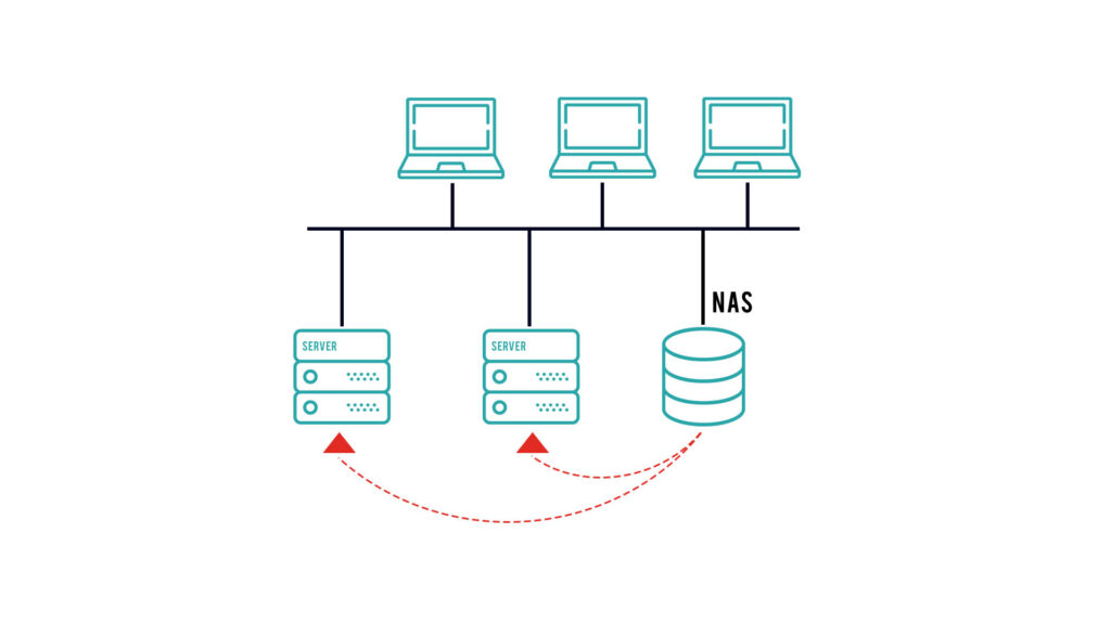 Nel caso del NAS, a grande capacità di archivio, corrisponde anche un alto potere di condivisione grazie alla connessione ad una rete e ai server, che si occupano di smistare le richieste e le risposte.